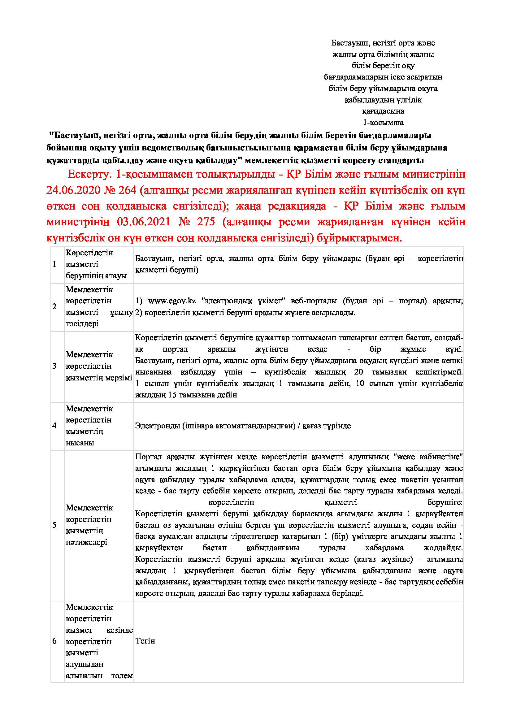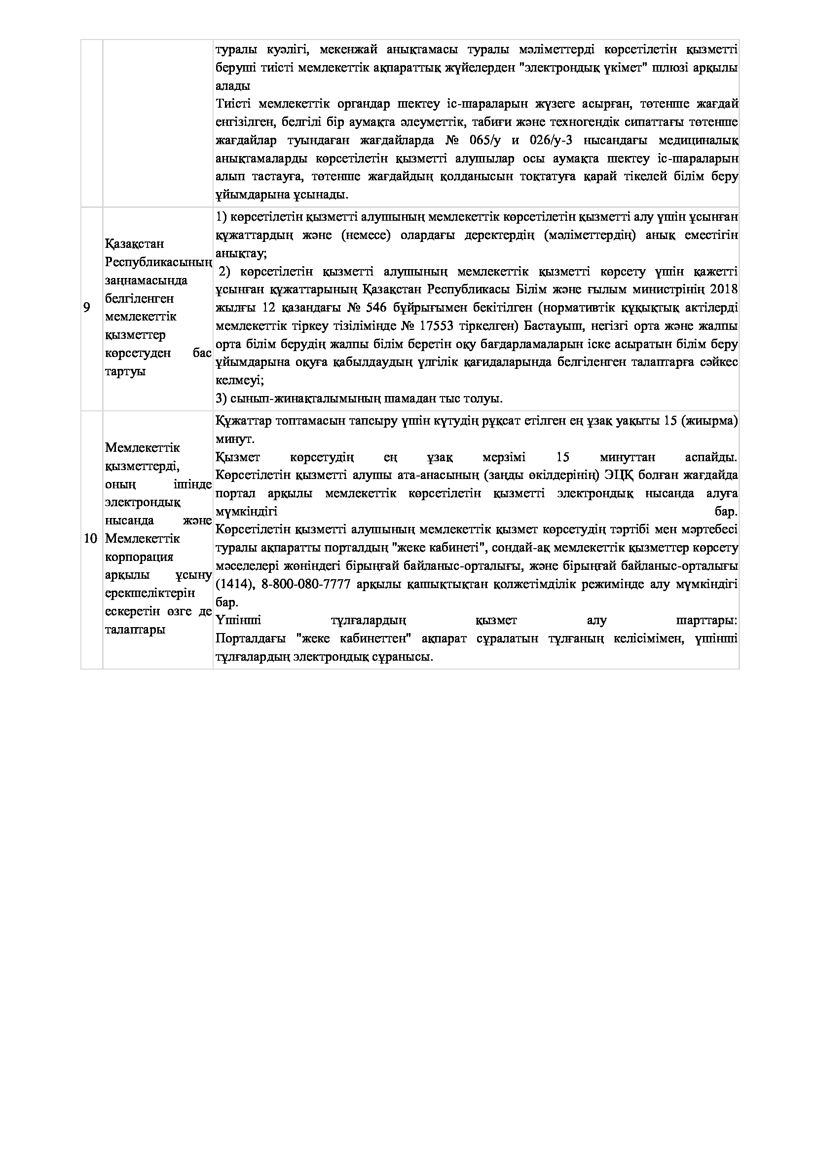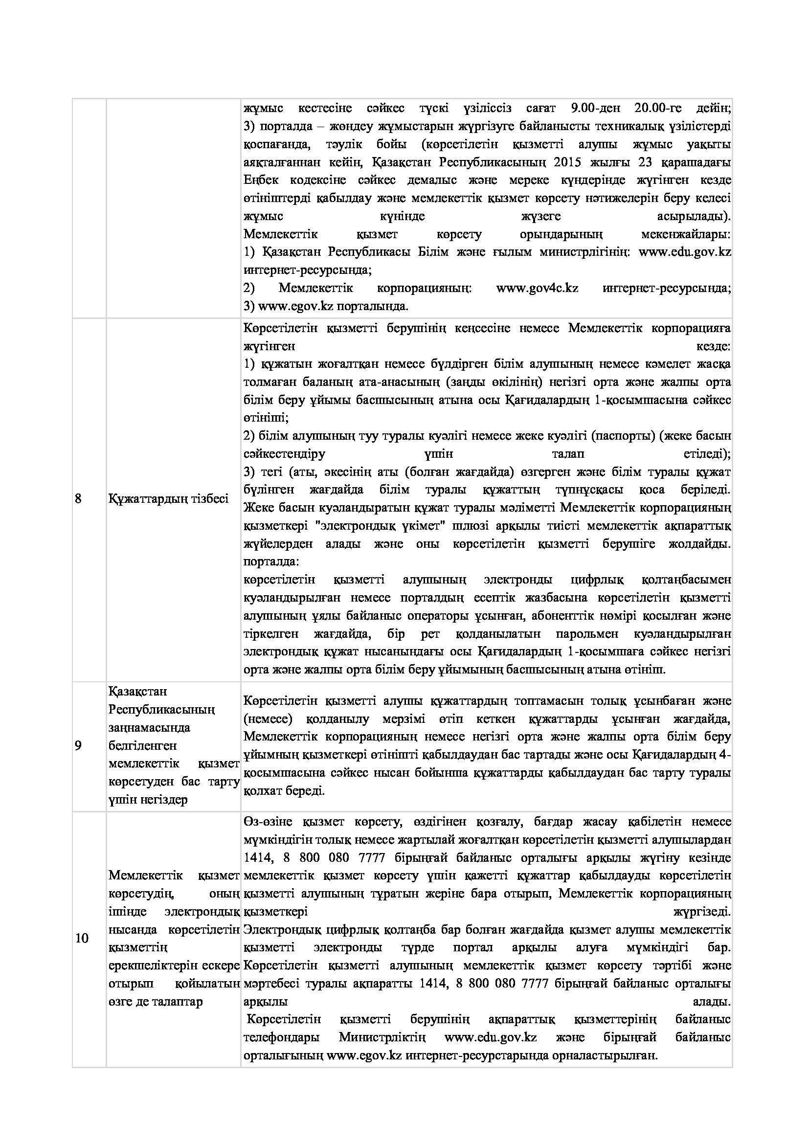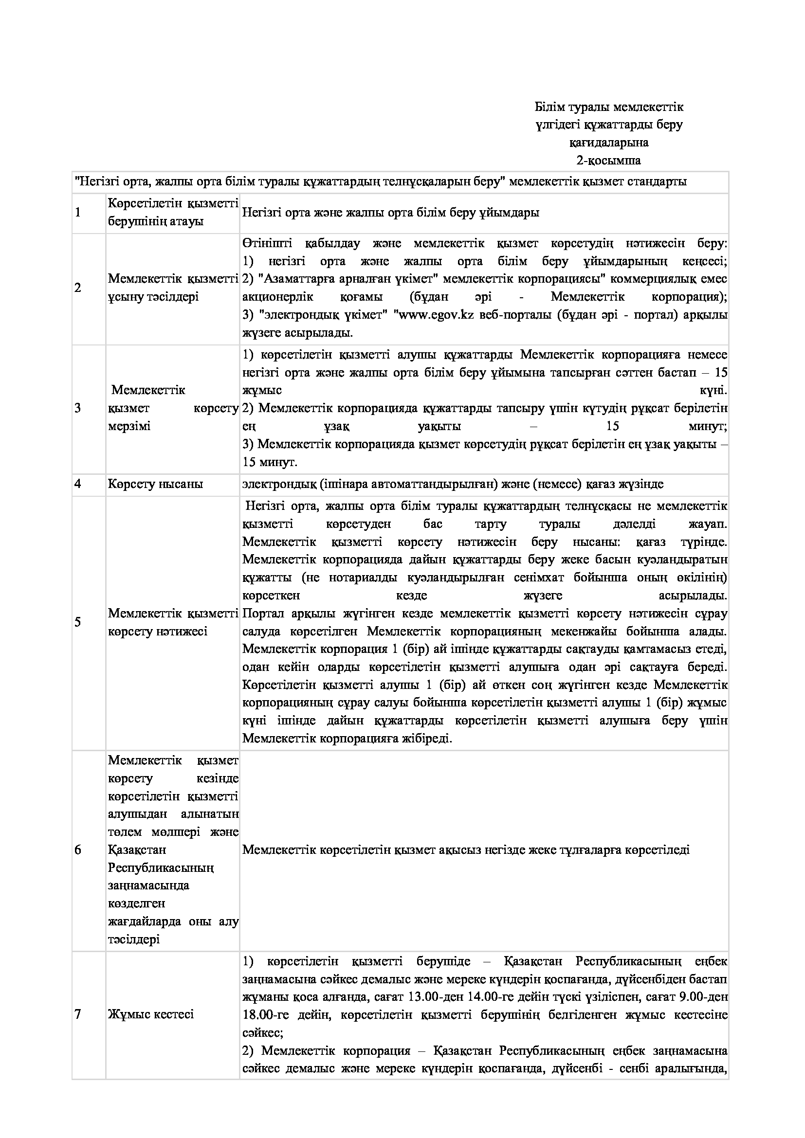 МҚК ТӘРТІБІ  Негізгі орта, жалпы орта білім туралы құжаттардың телнұсқаларын беру