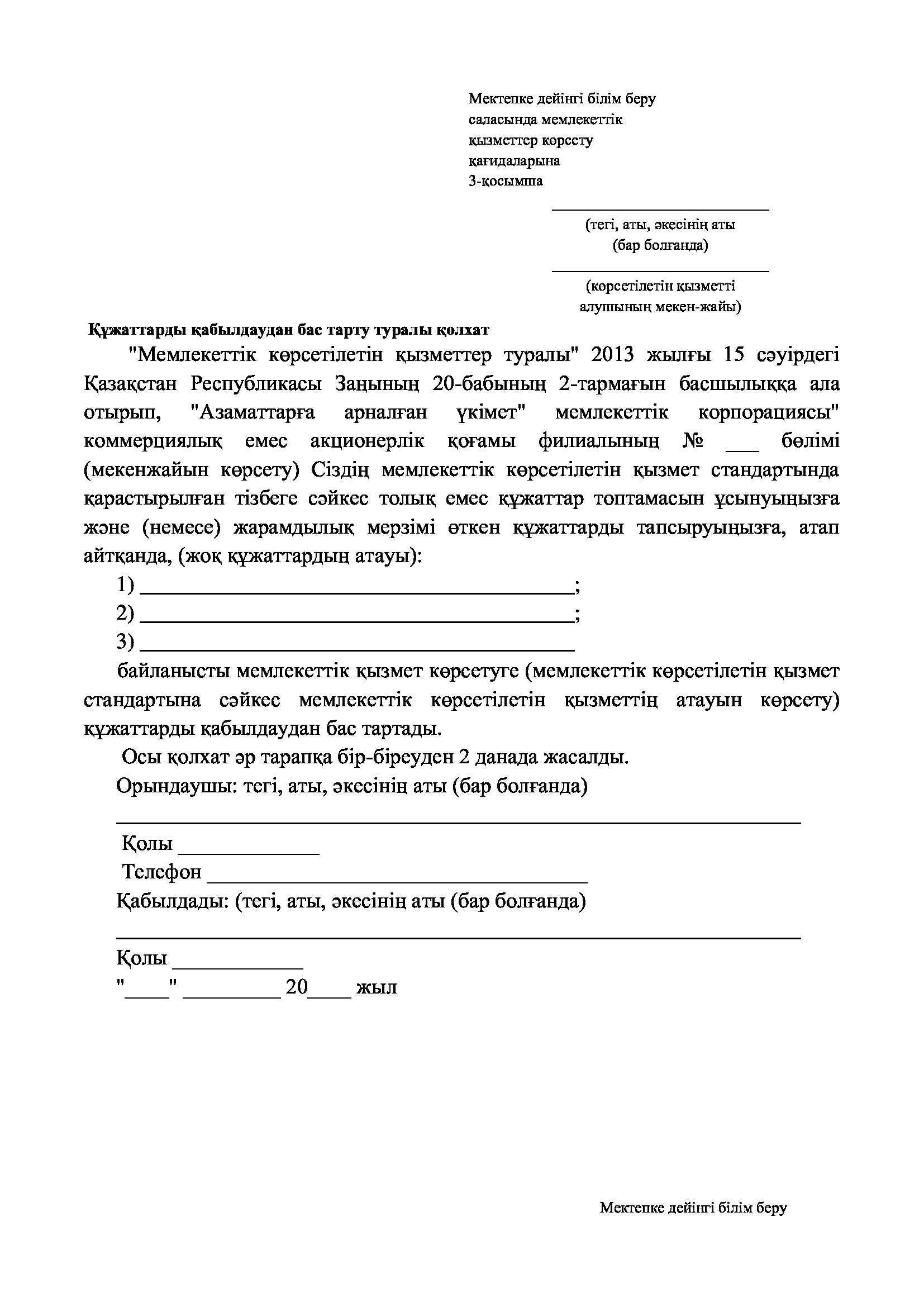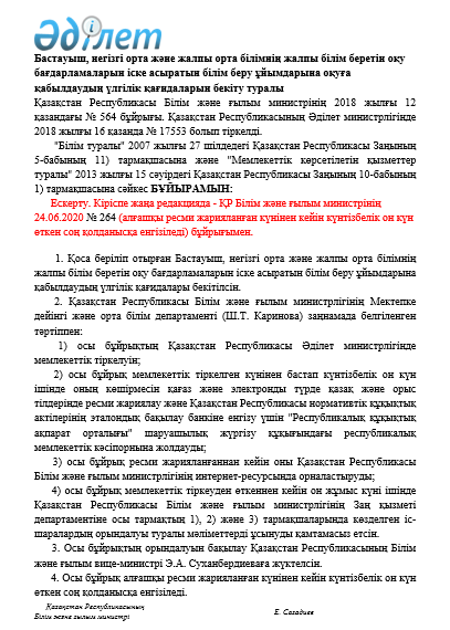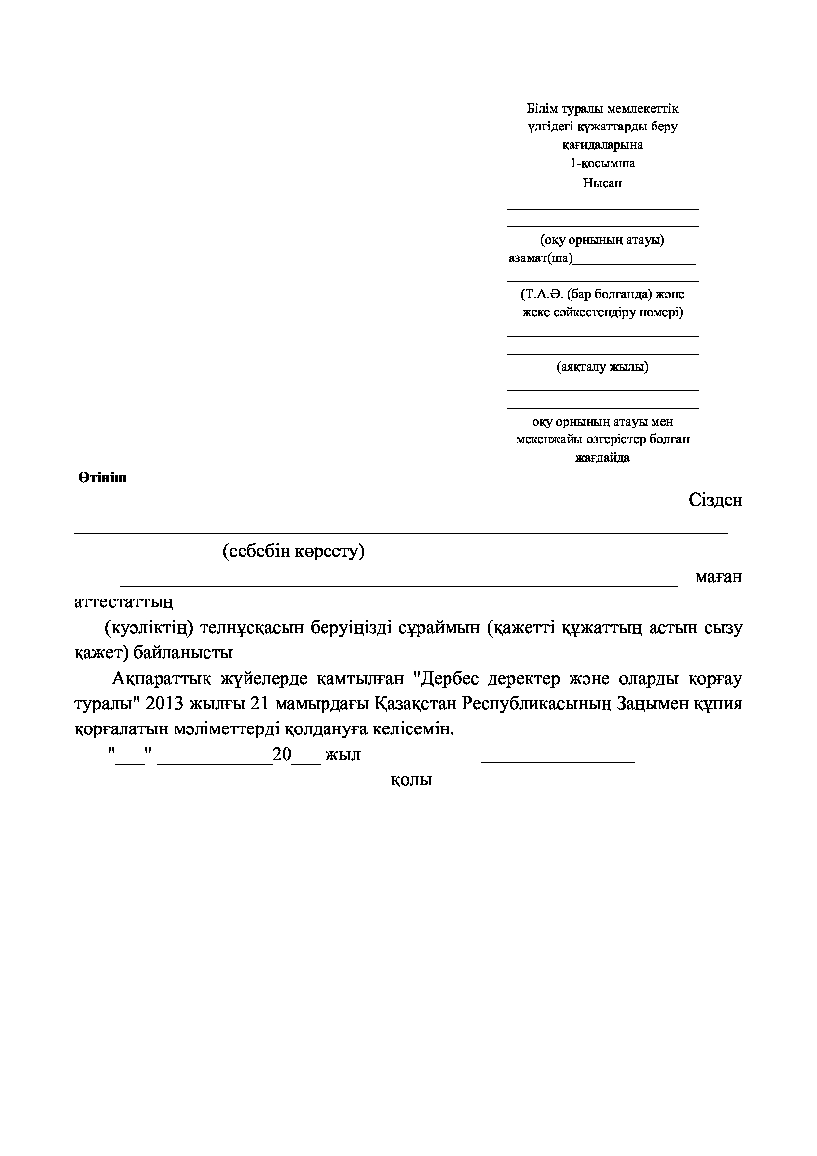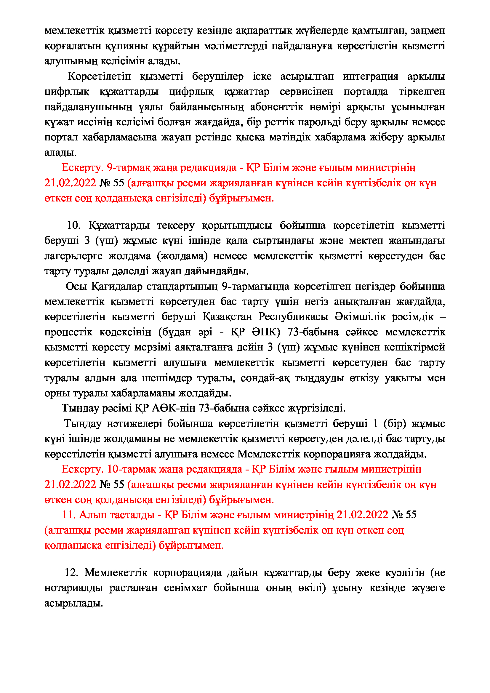 МҚК ТӘРТІБІ  Негізгі орта, жалпы орта білім туралы құжаттардың телнұсқаларын беру