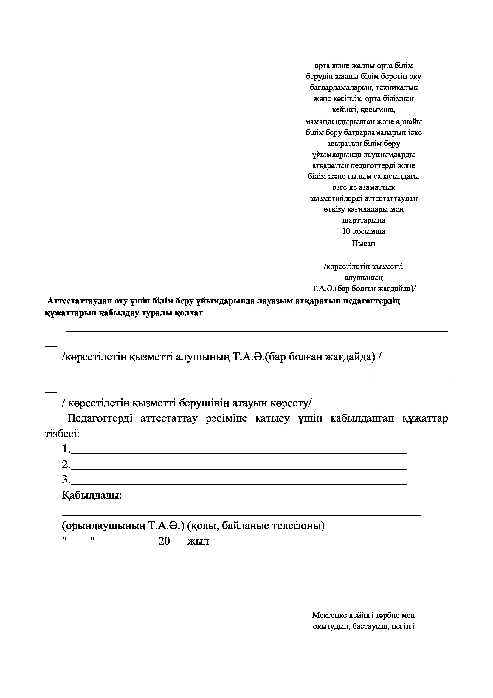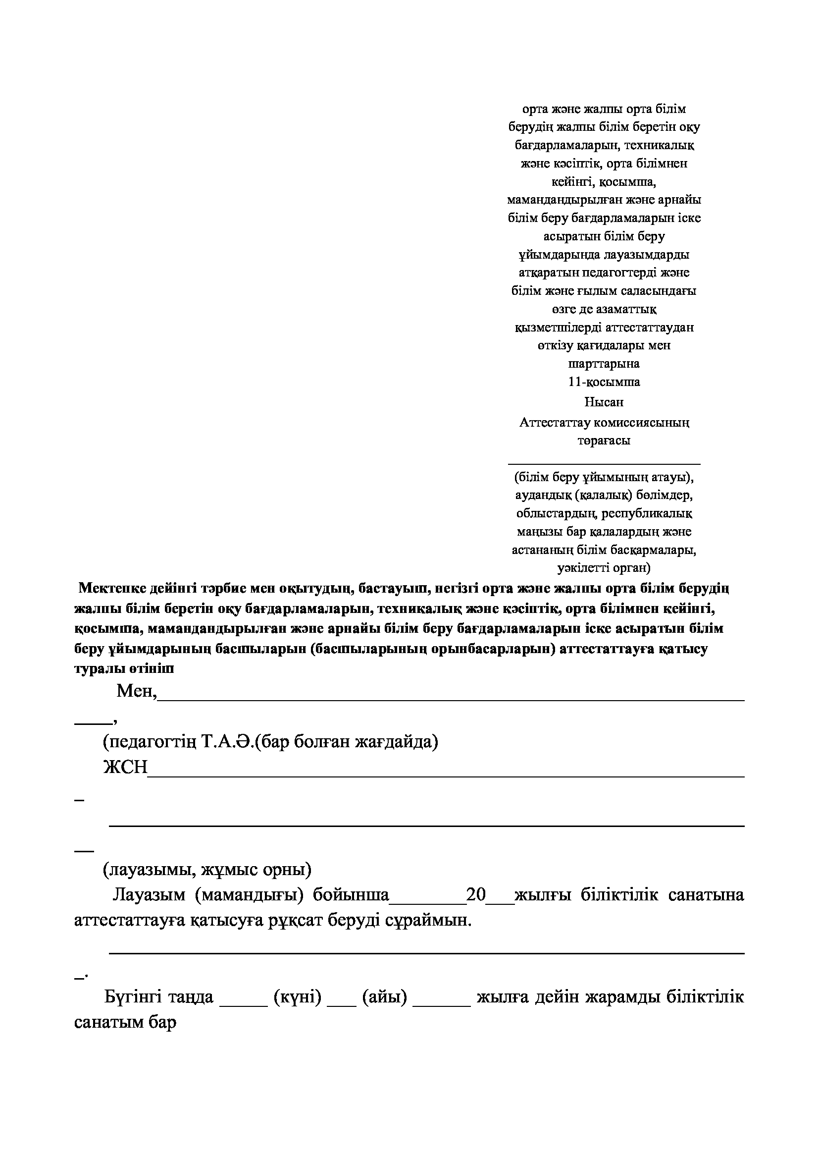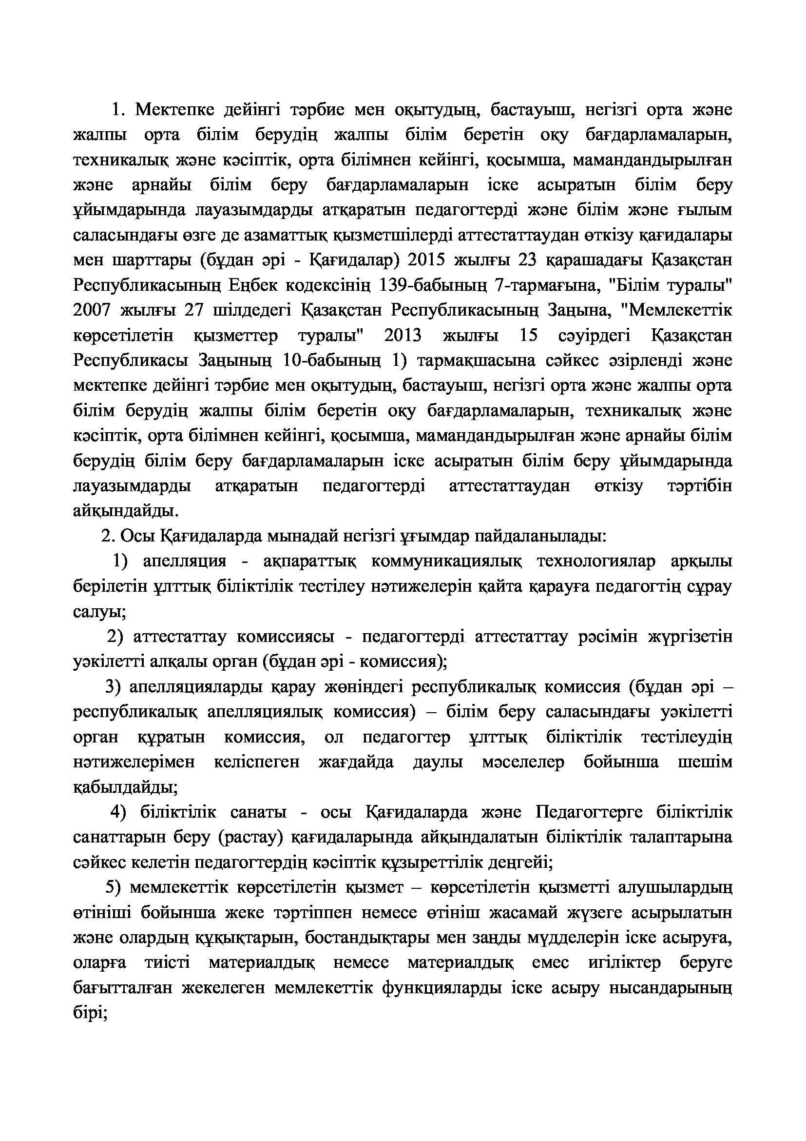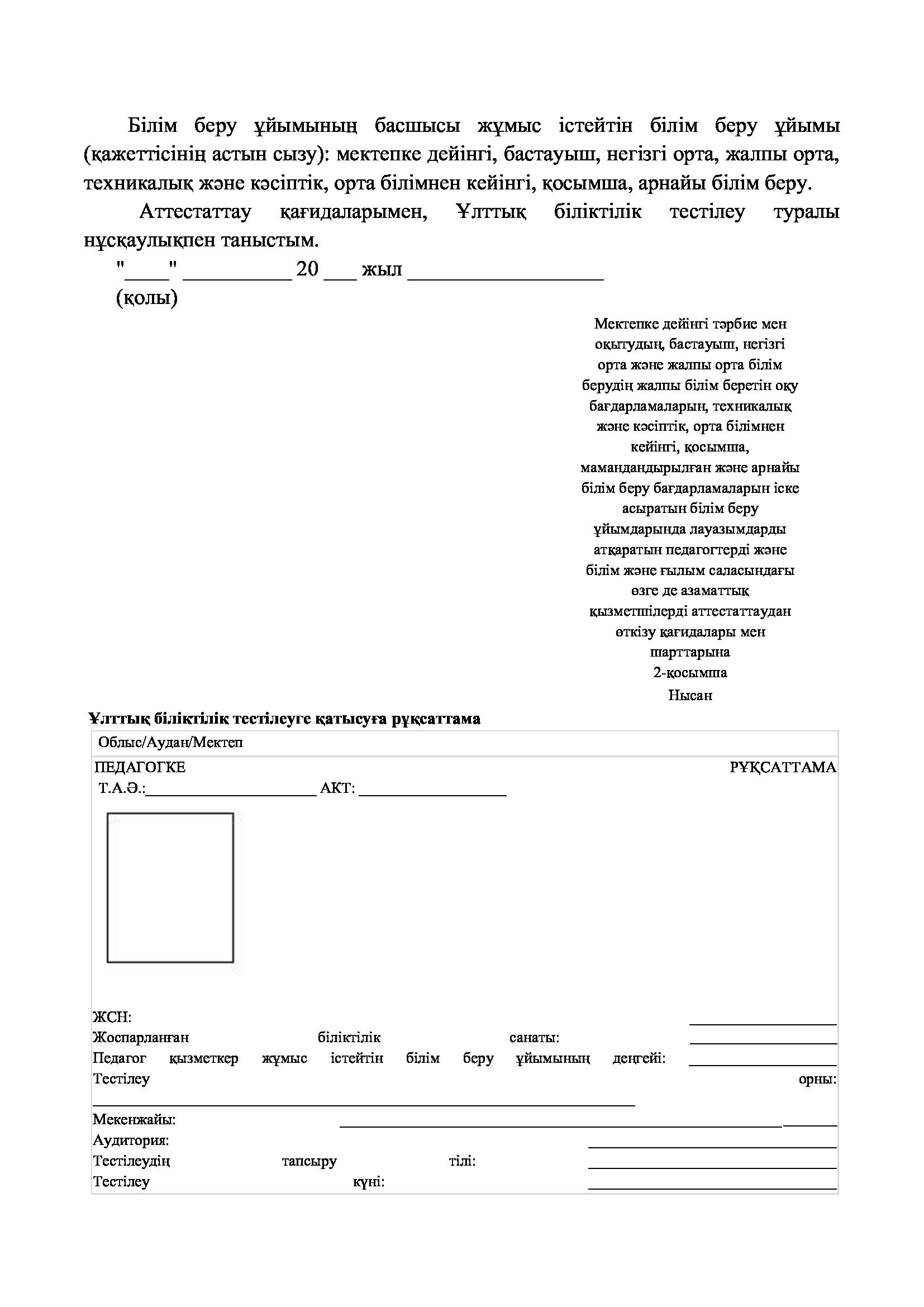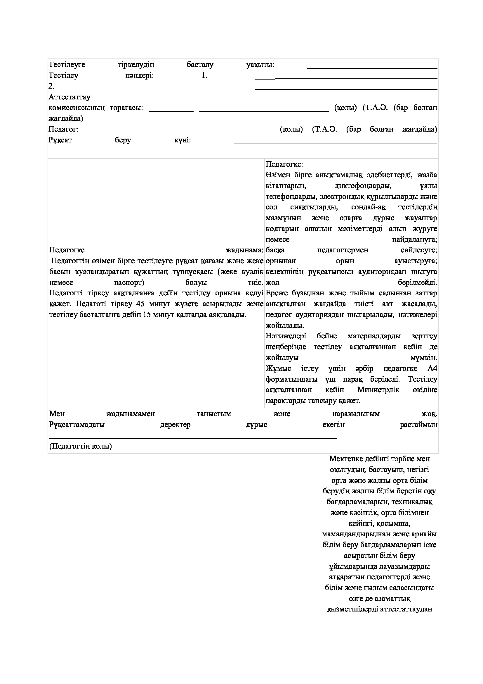 ҚАҒИДА Педагогтерді аттестаттаудан өткізу үшін құжаттар қабылдау