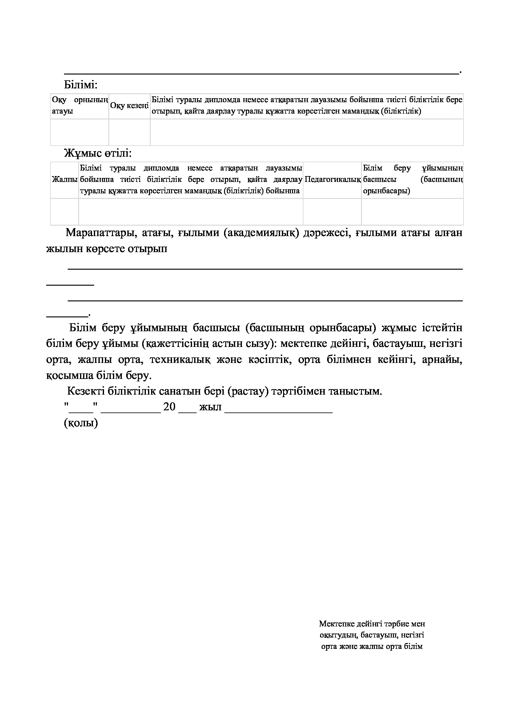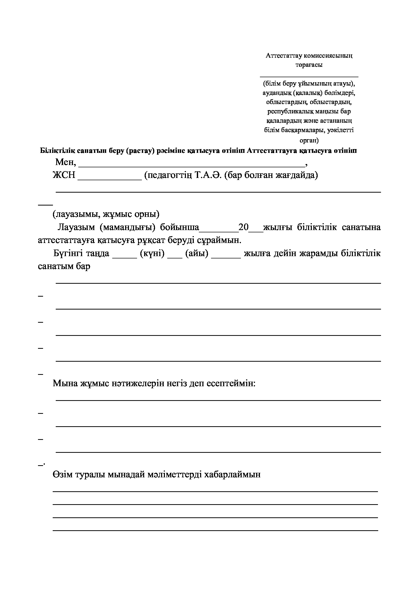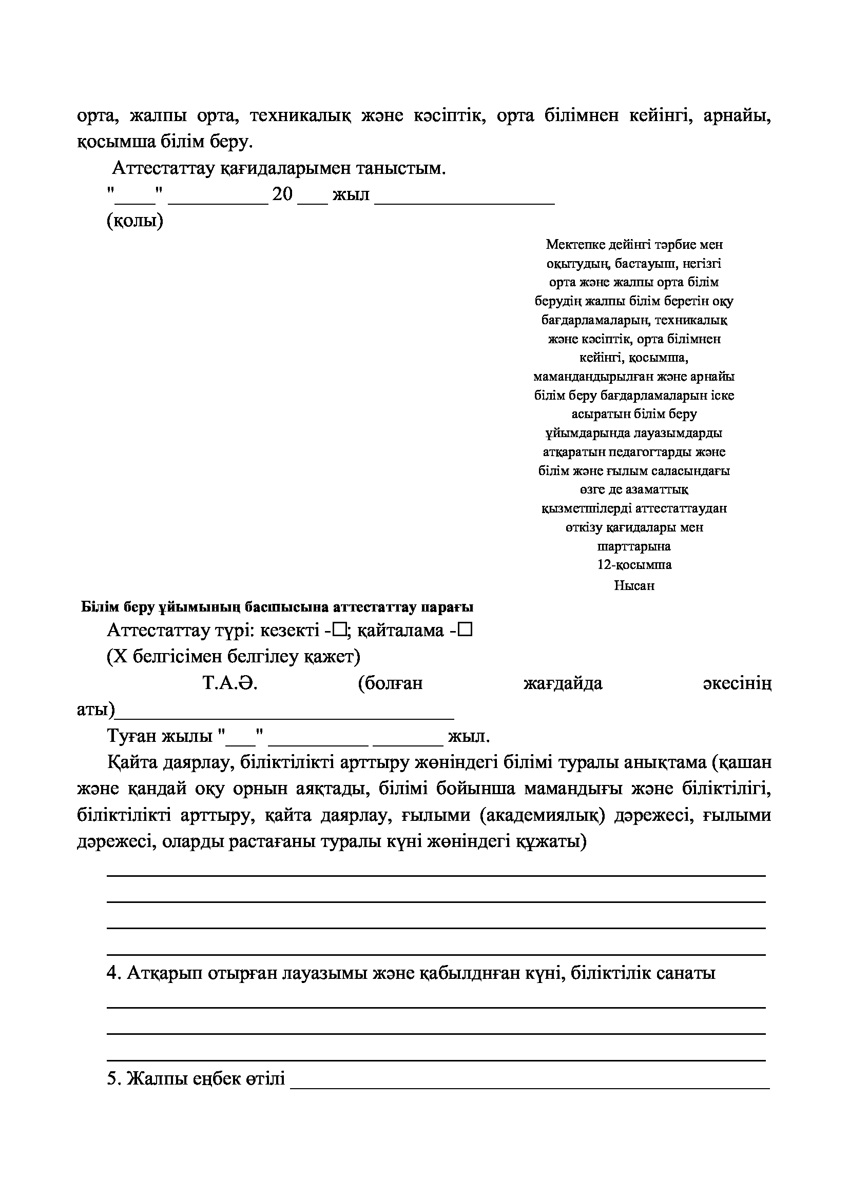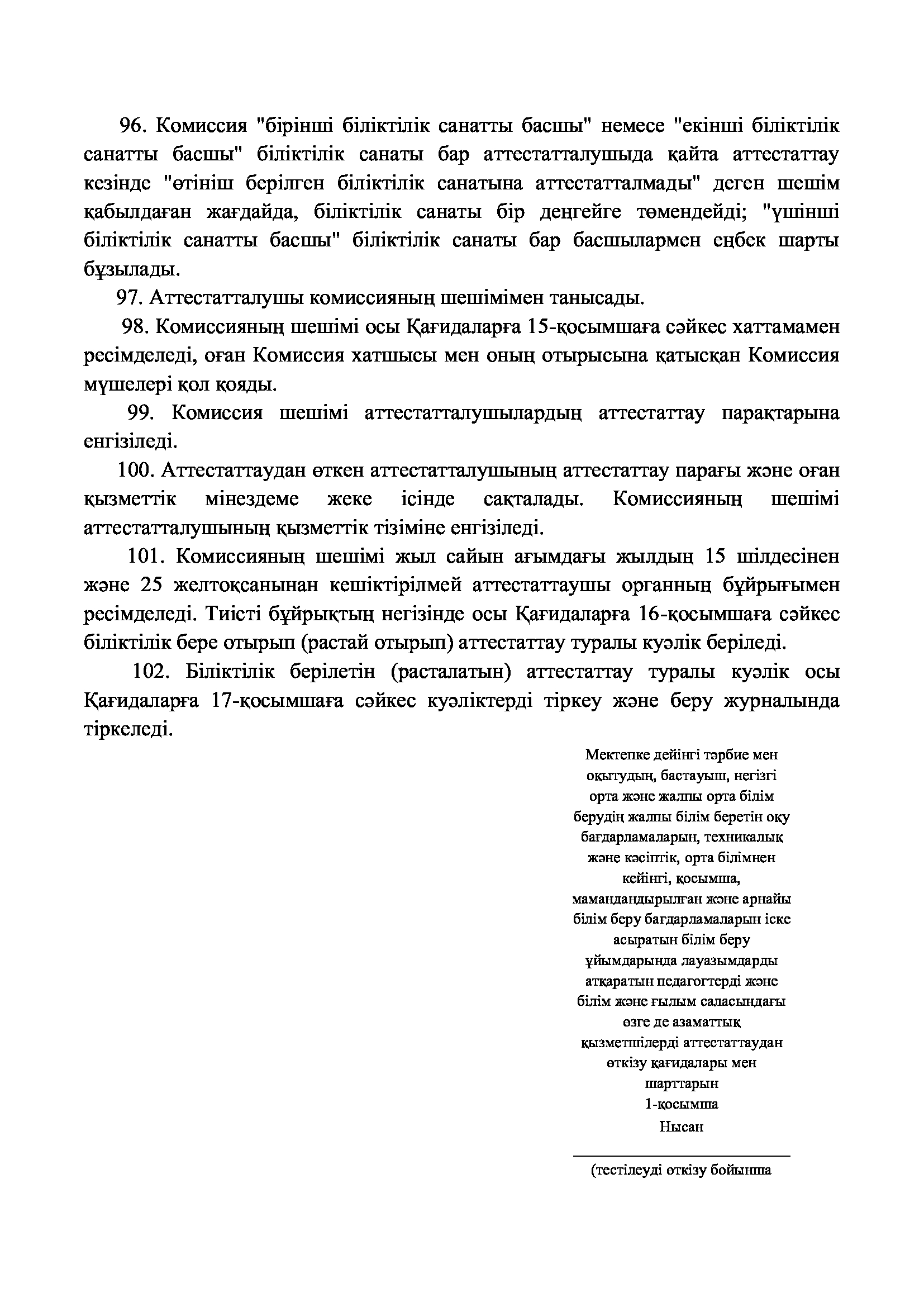 ҚАҒИДА Педагогтерді аттестаттаудан өткізу үшін құжаттар қабылдау