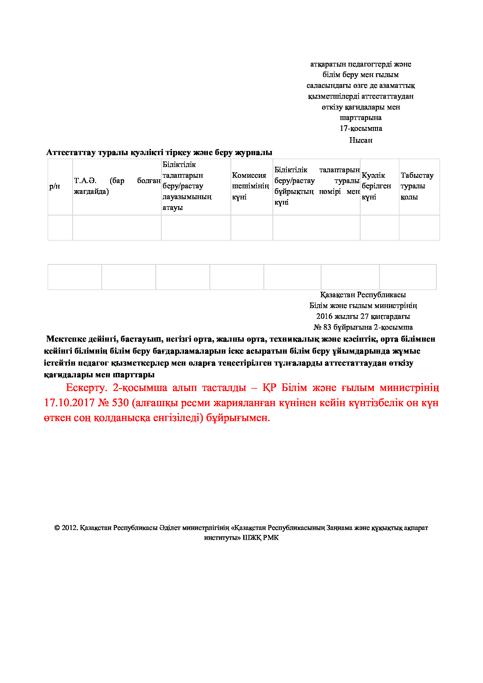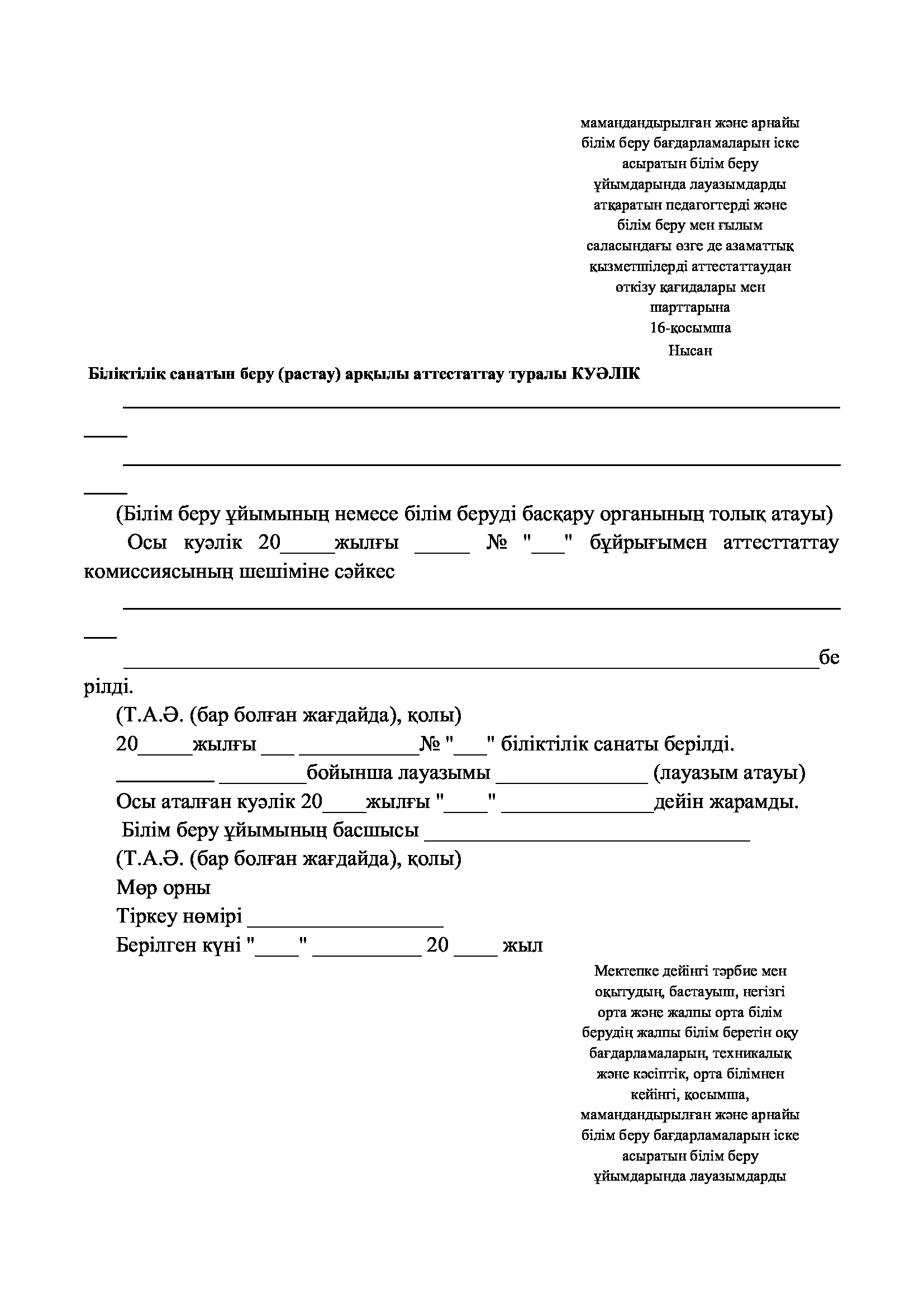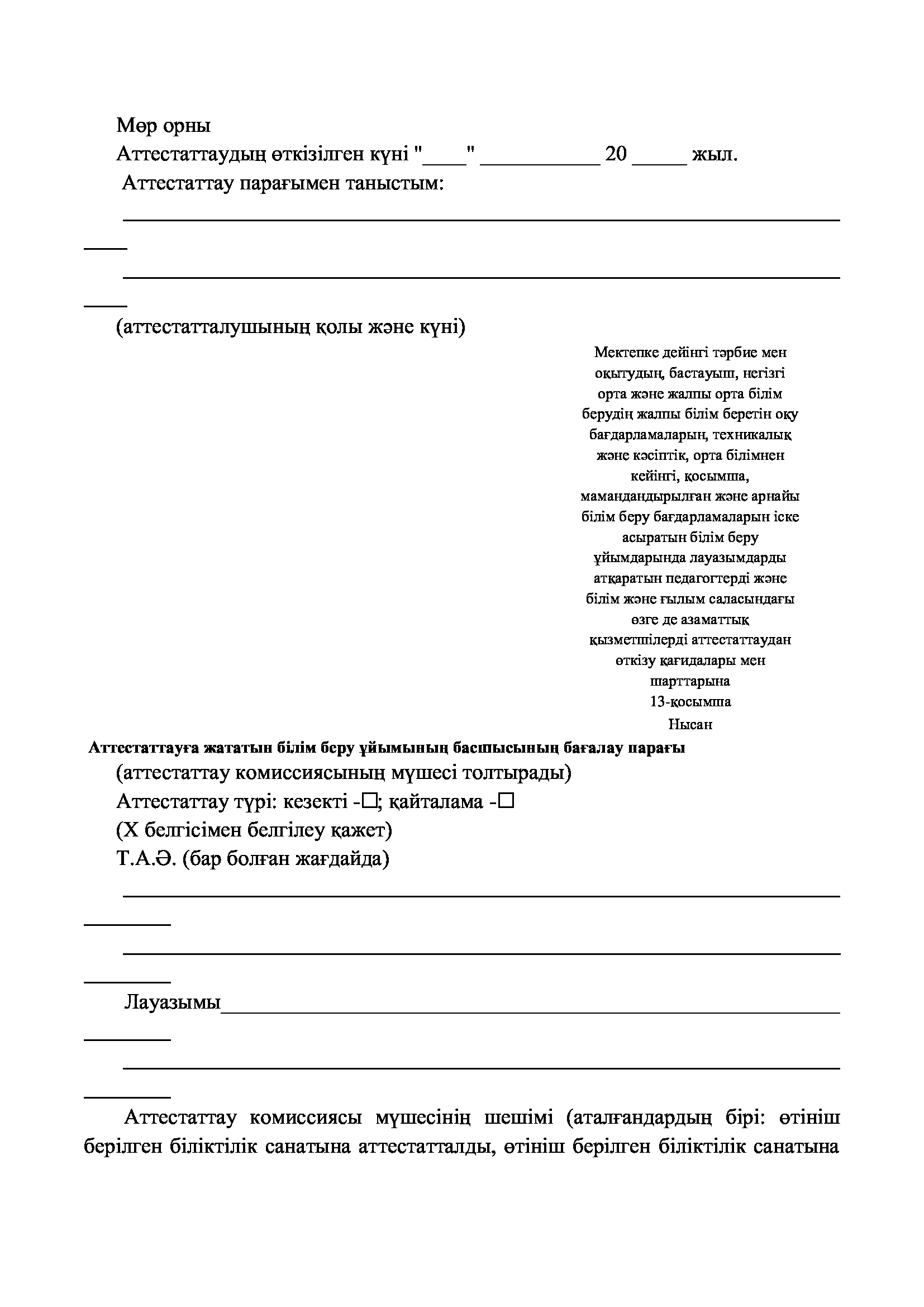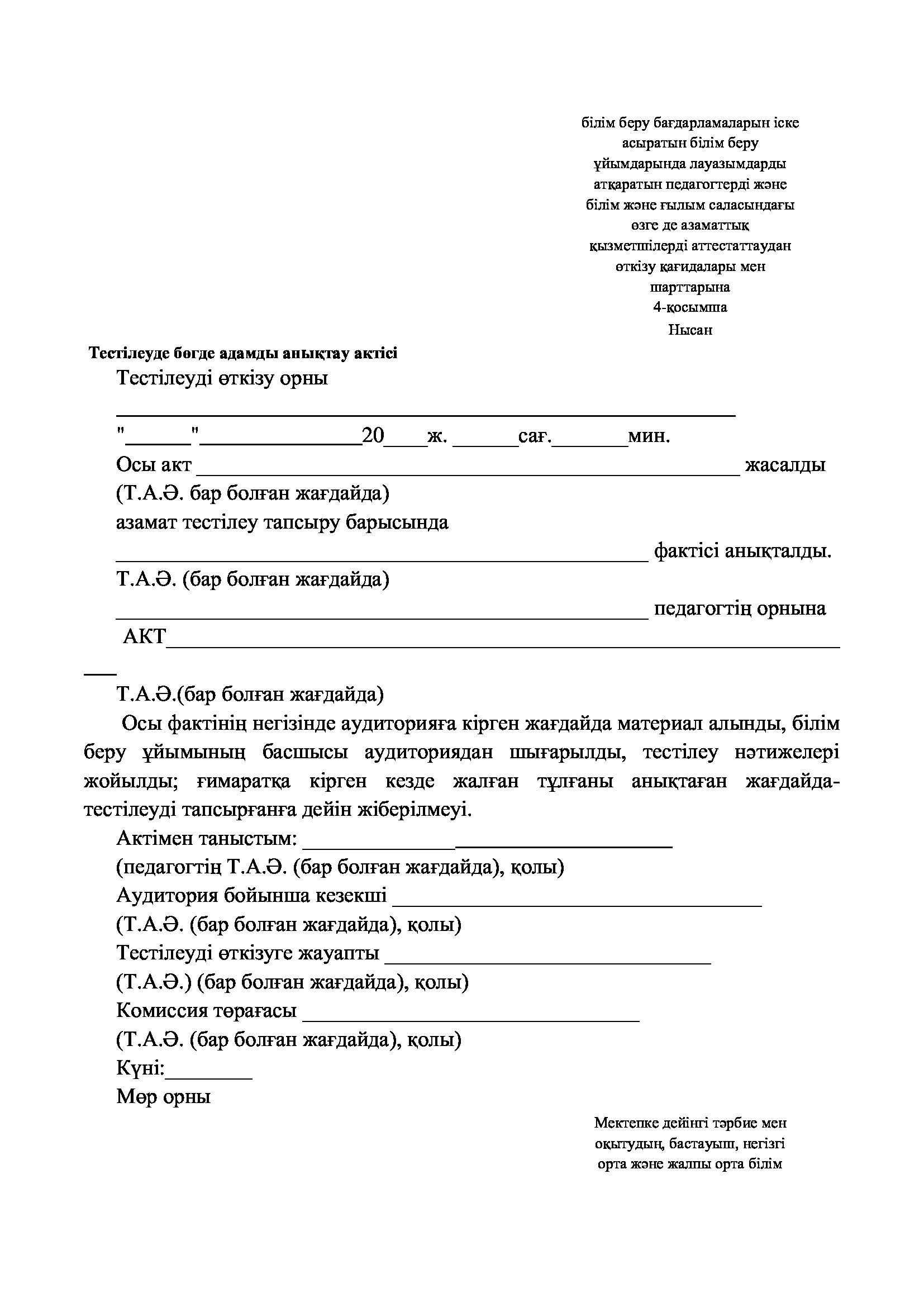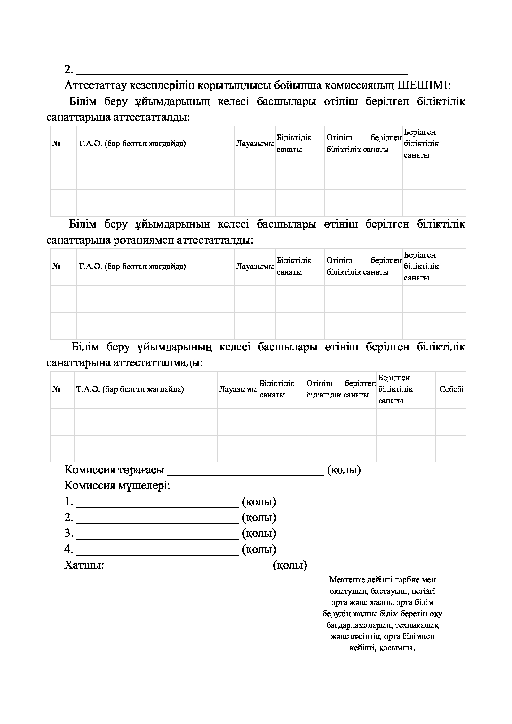 ҚАҒИДА Педагогтерді аттестаттаудан өткізу үшін құжаттар қабылдау