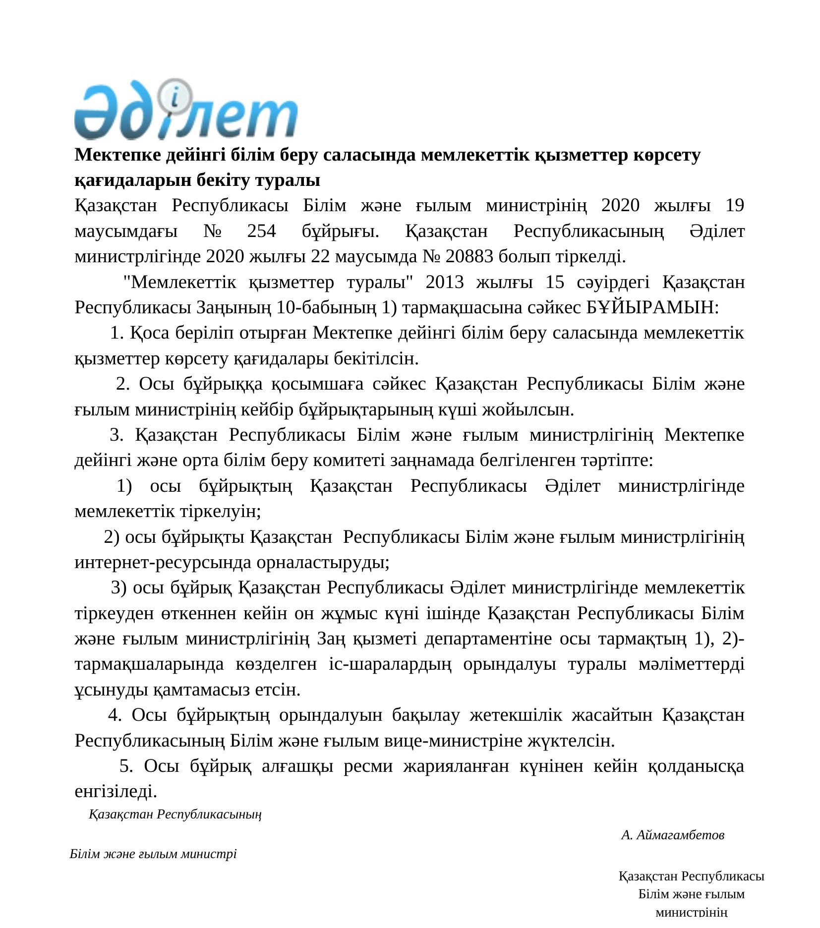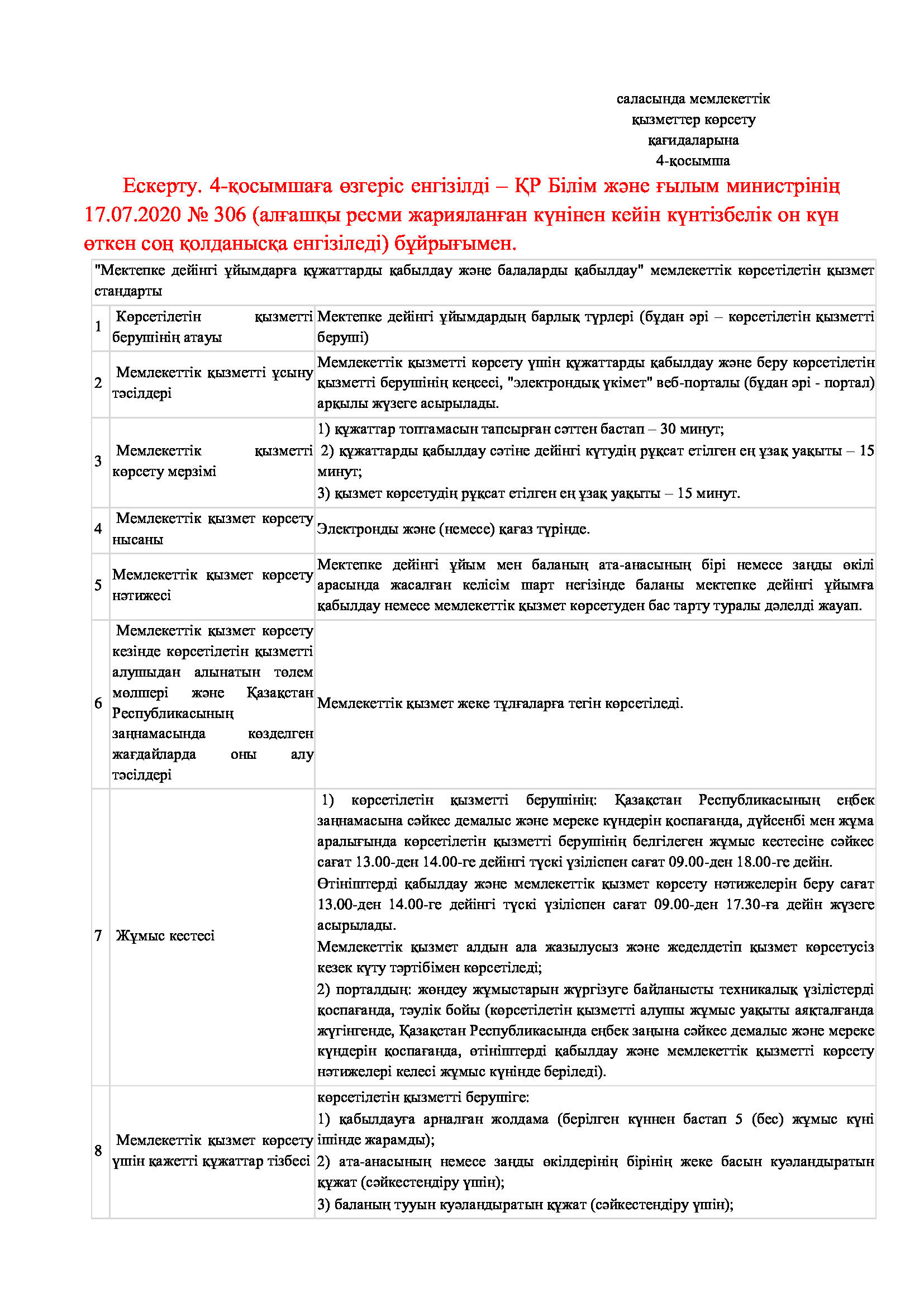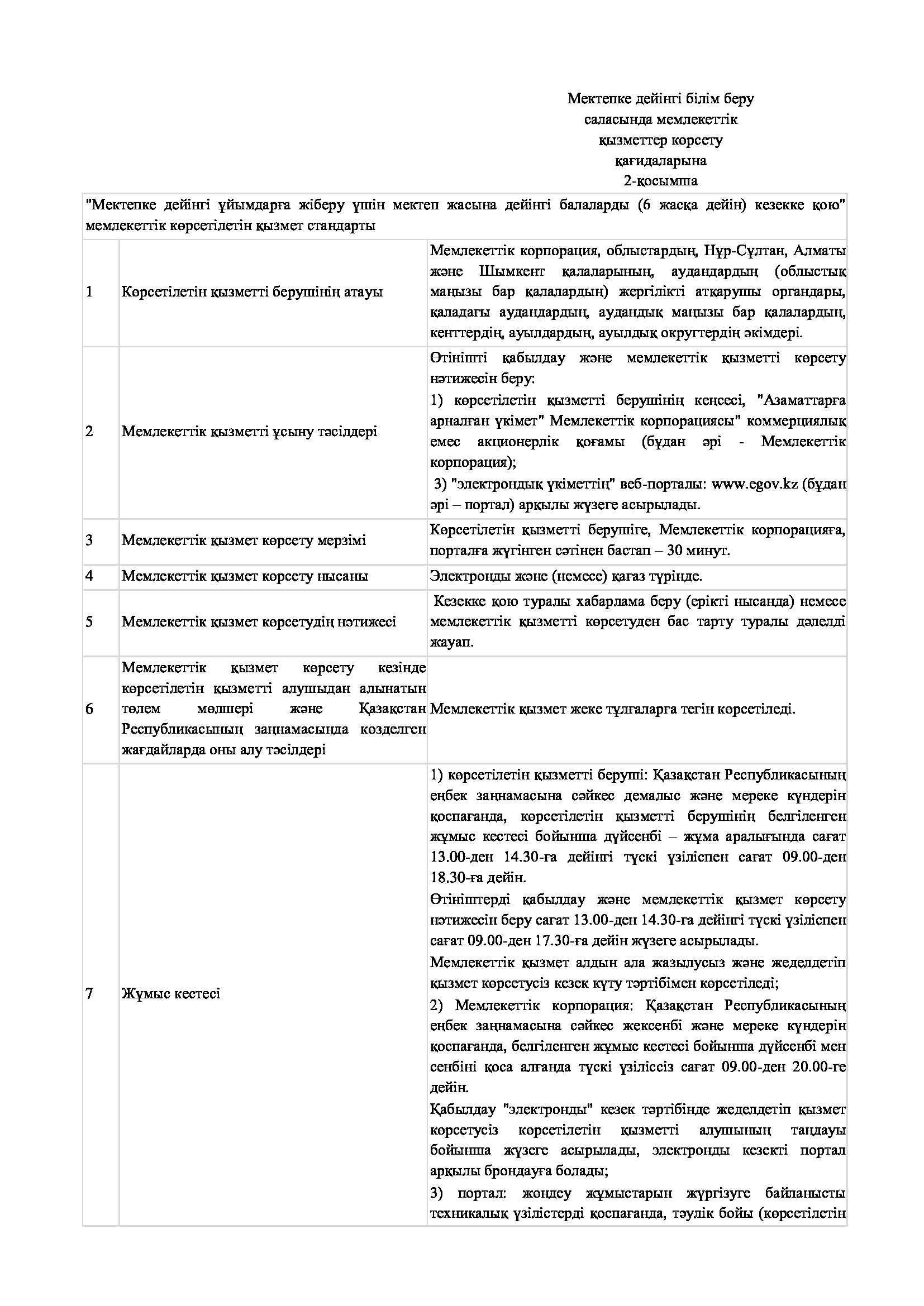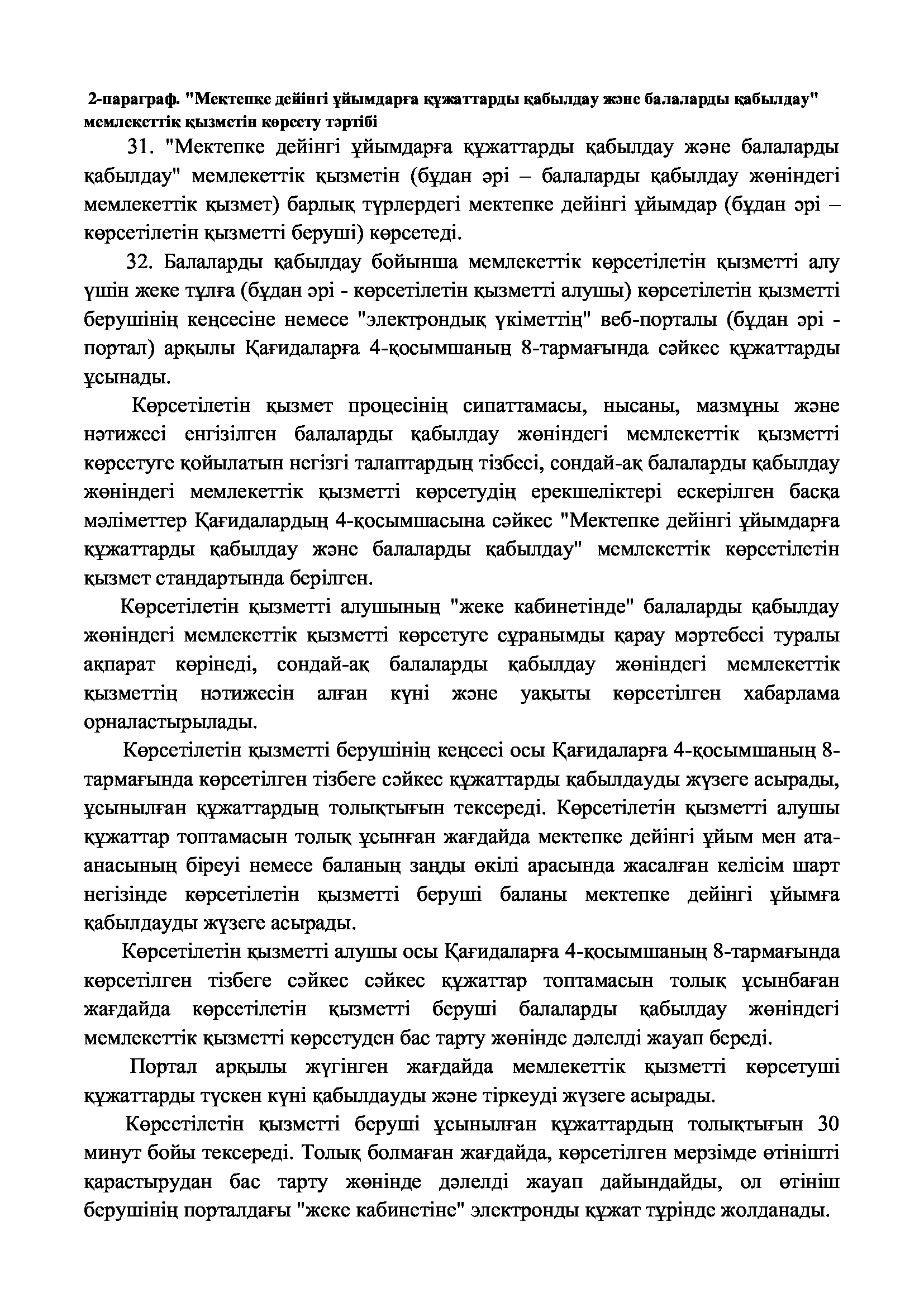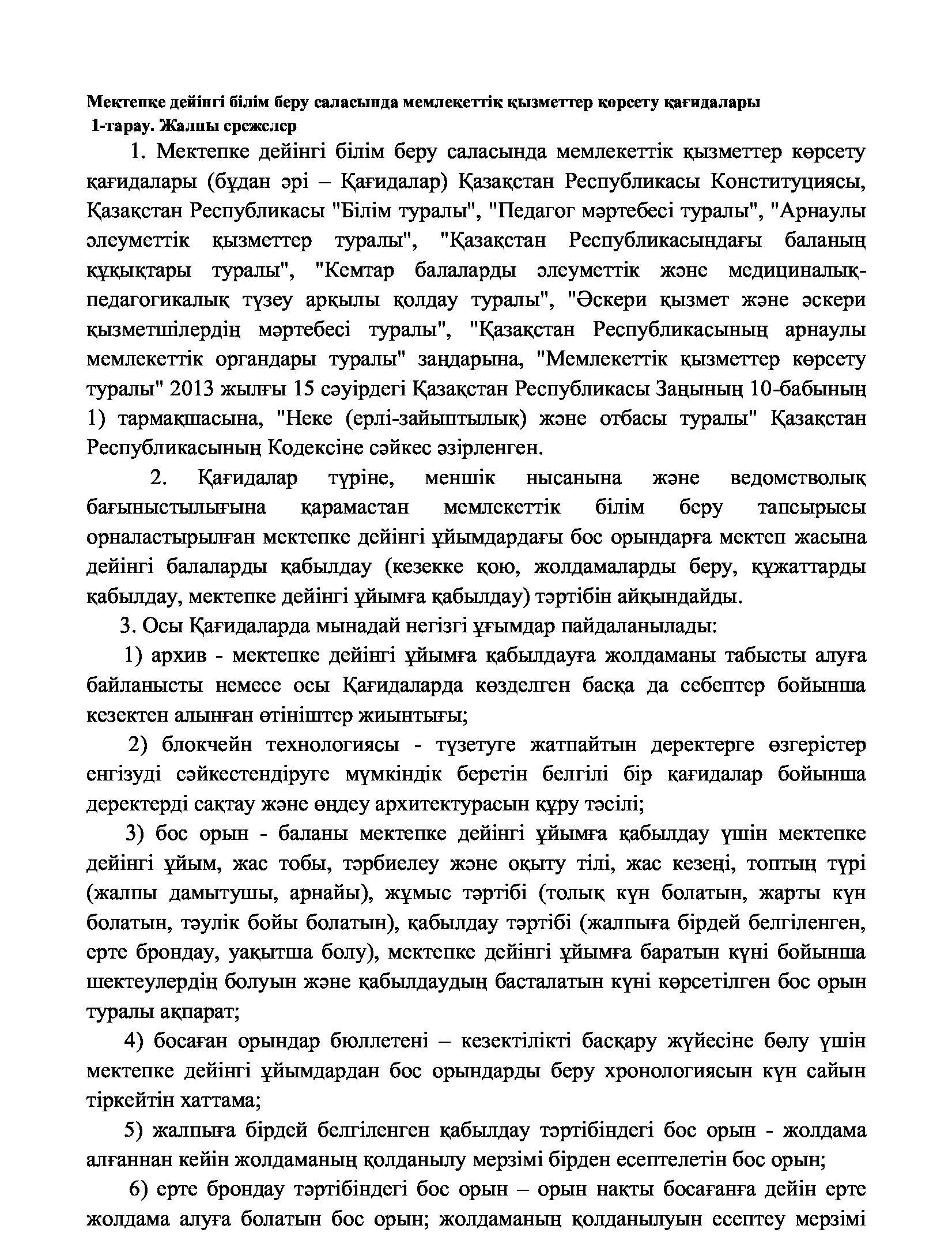 ҚАҒИДА Мектепке дейінгі білім беру саласында мемлекеттік қызметтер көрсету