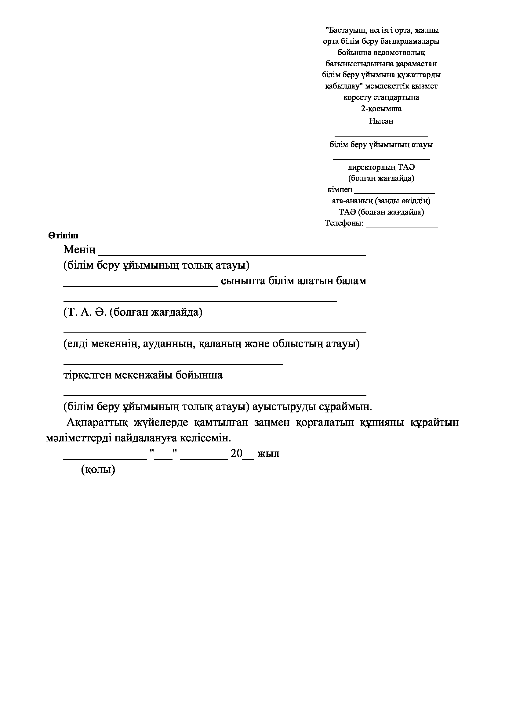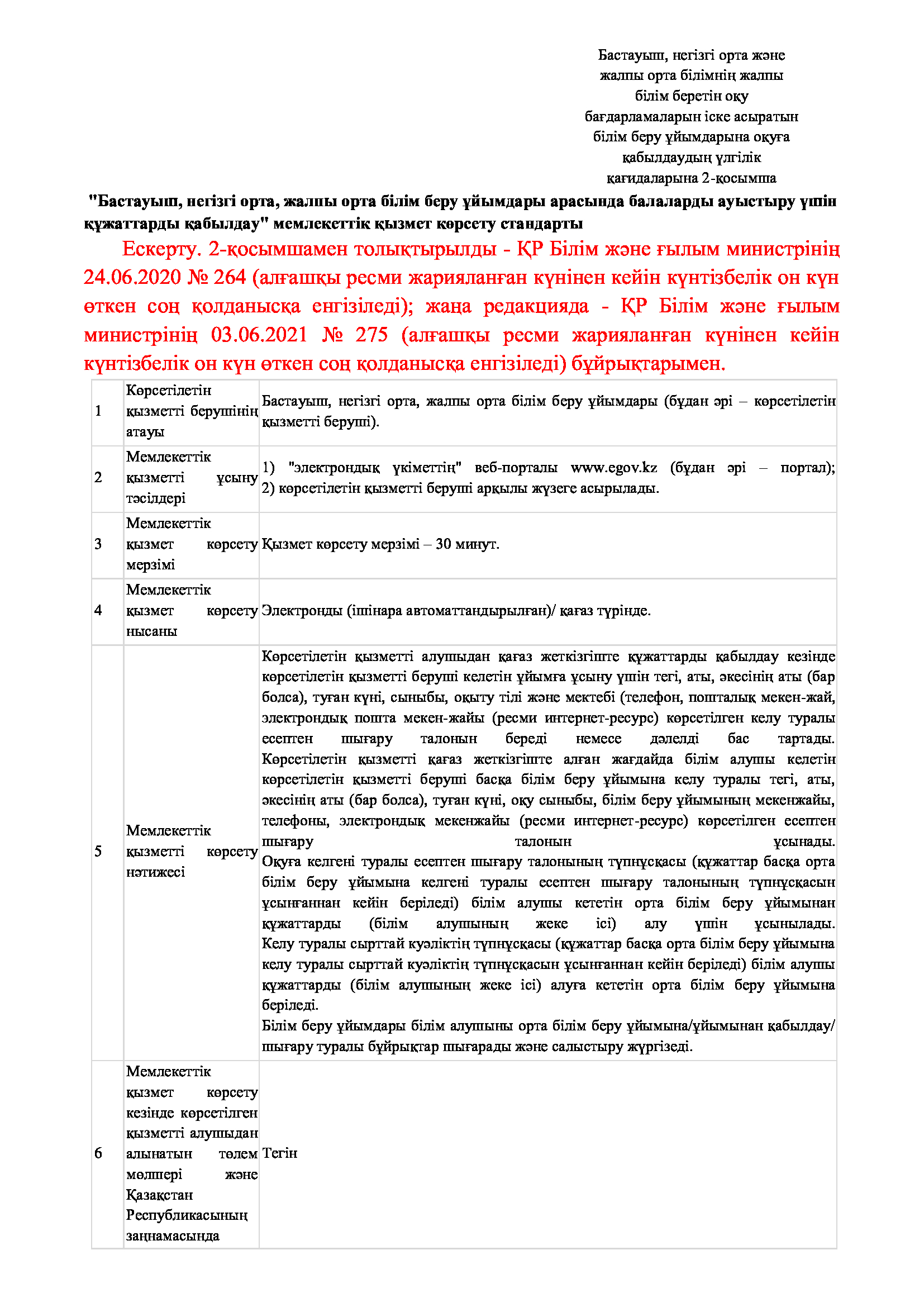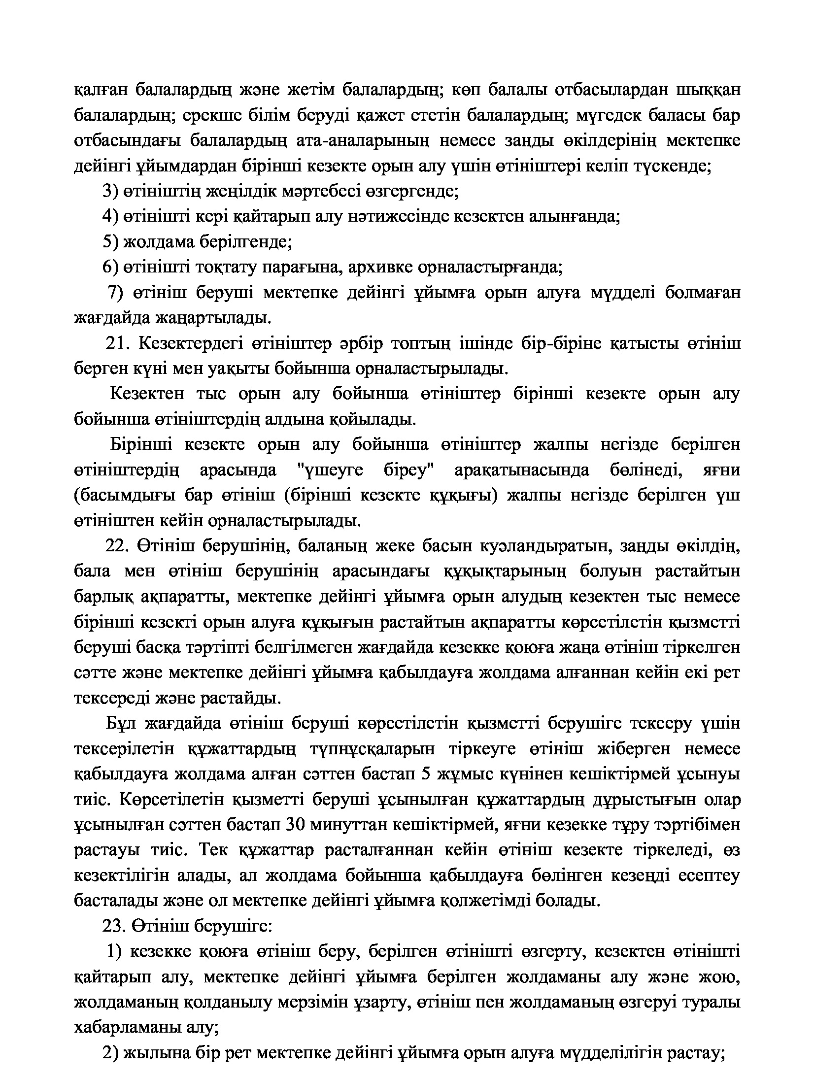 ҚАҒИДА Бастауыш, негізгі орта, жалпы орта білім беру ұйымдары арасында балаларды ауыстыру үшін құжаттарды қабылдау