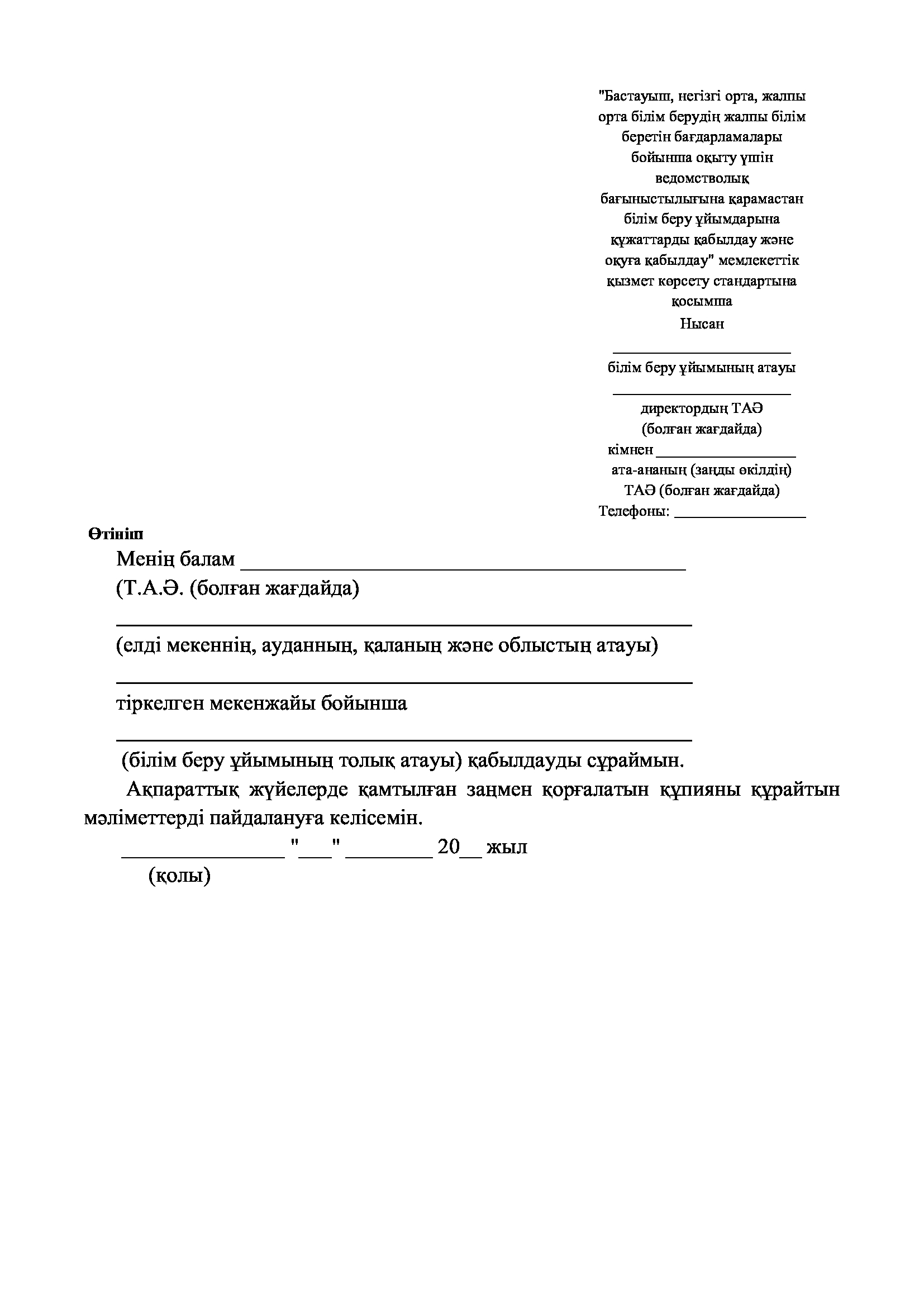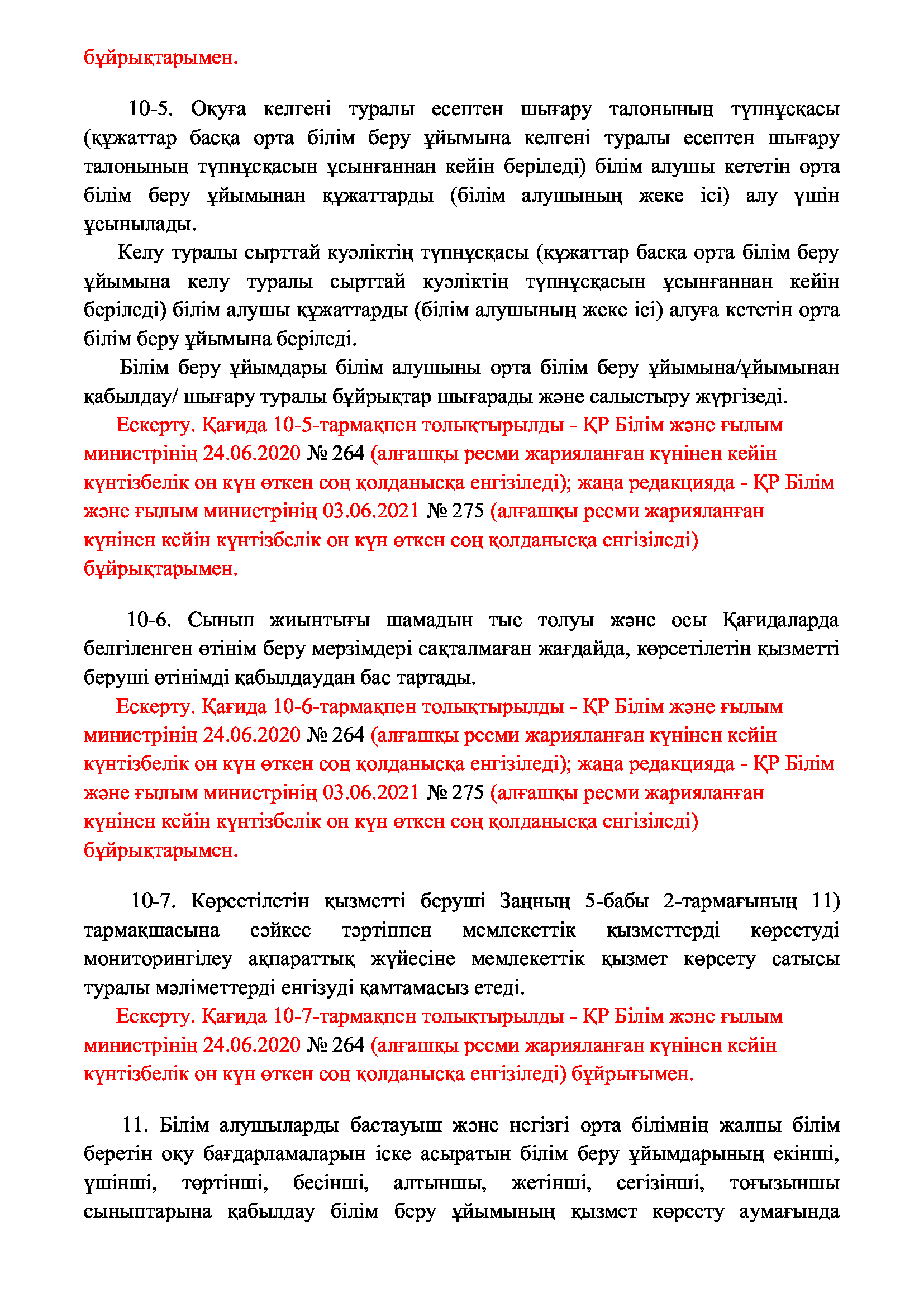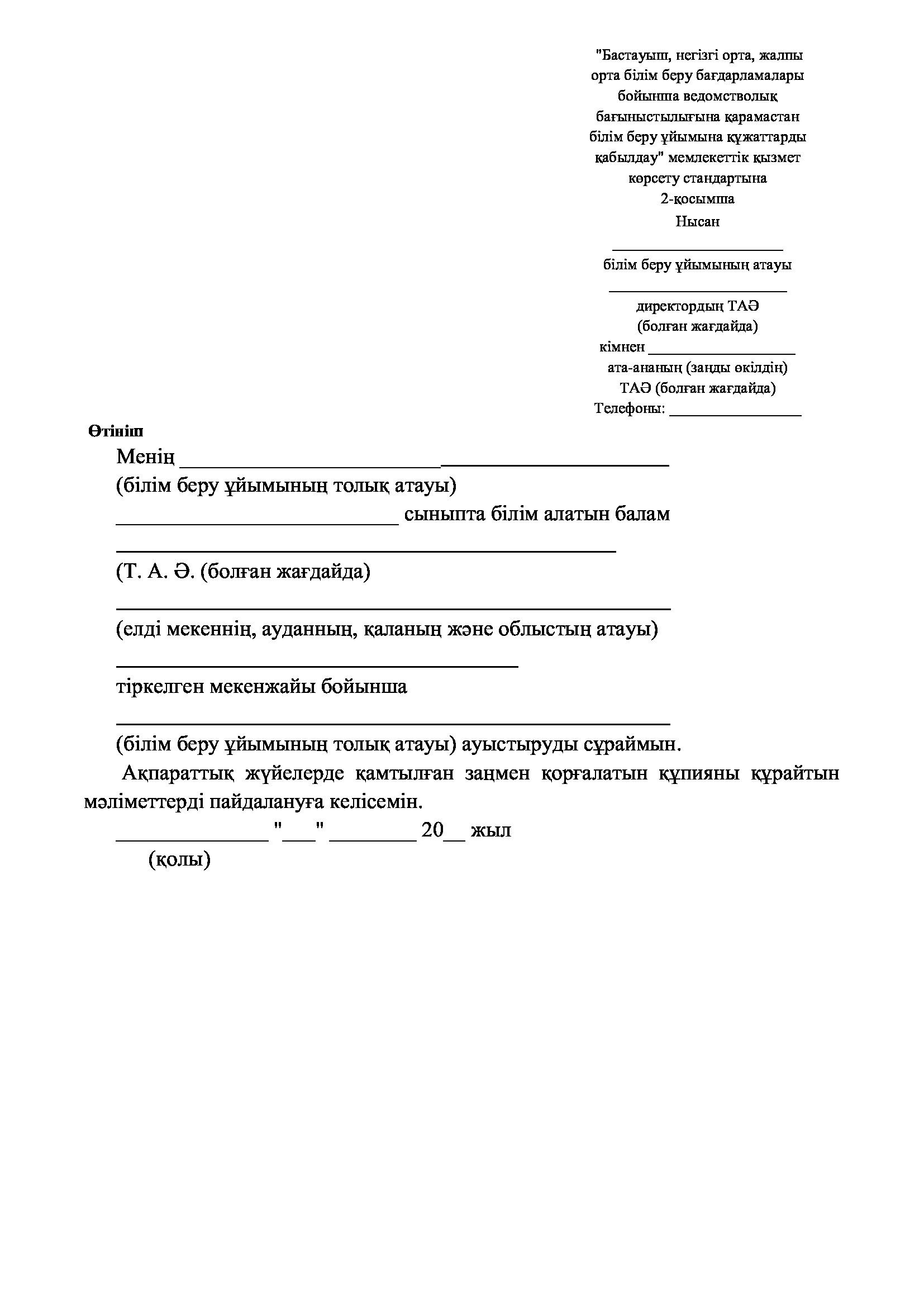 ҚАҒИДА Бастауыш, негізгі орта, жалпы орта білім беру ұйымдары арасында балаларды ауыстыру үшін құжаттарды қабылдау