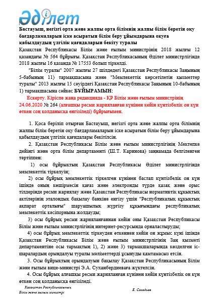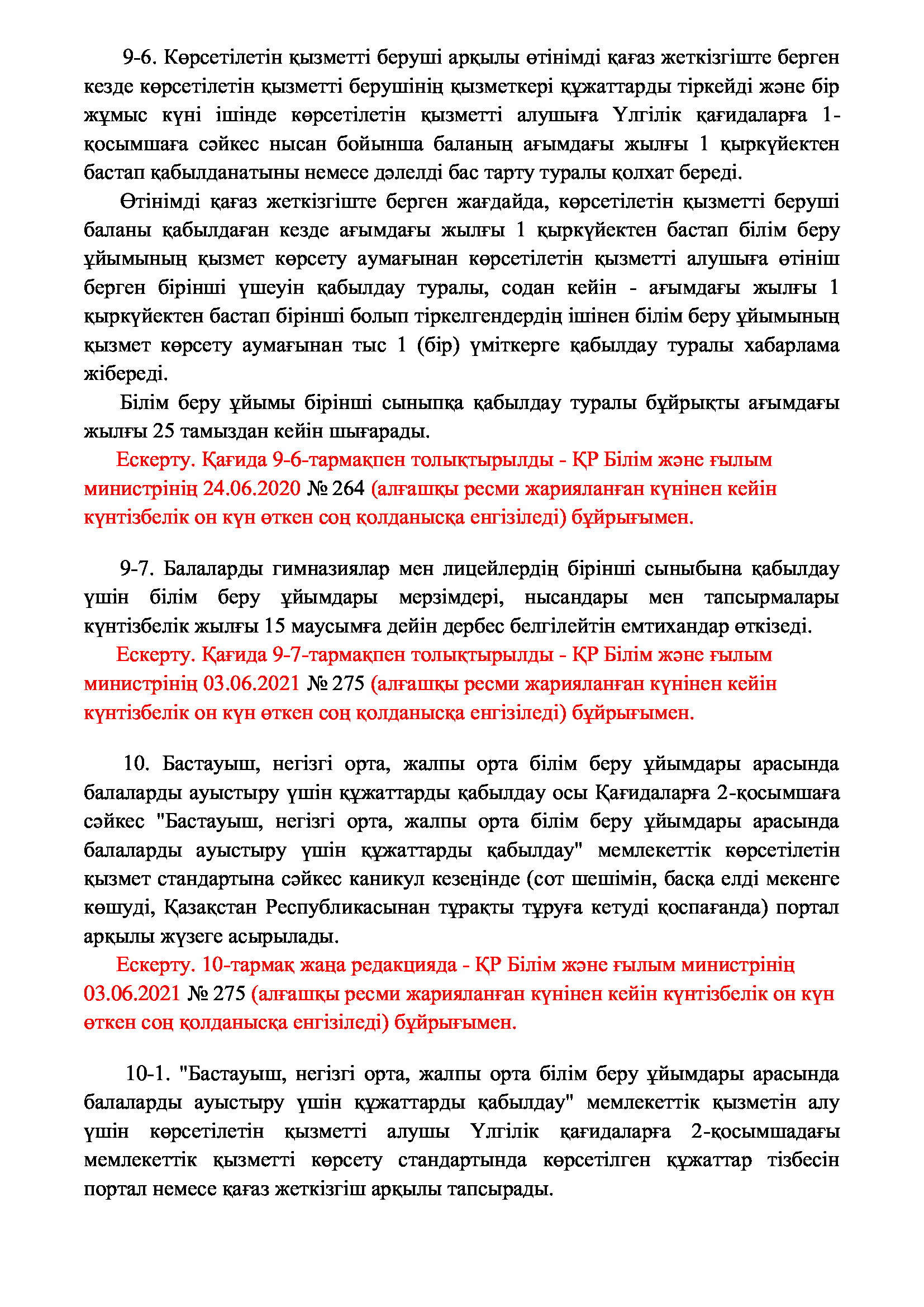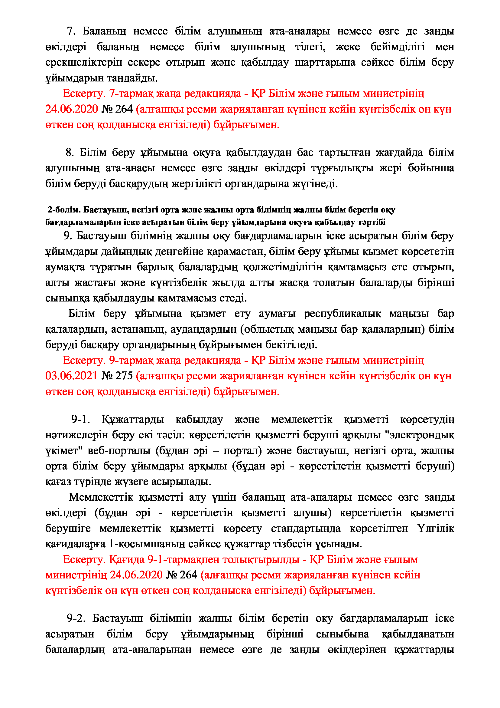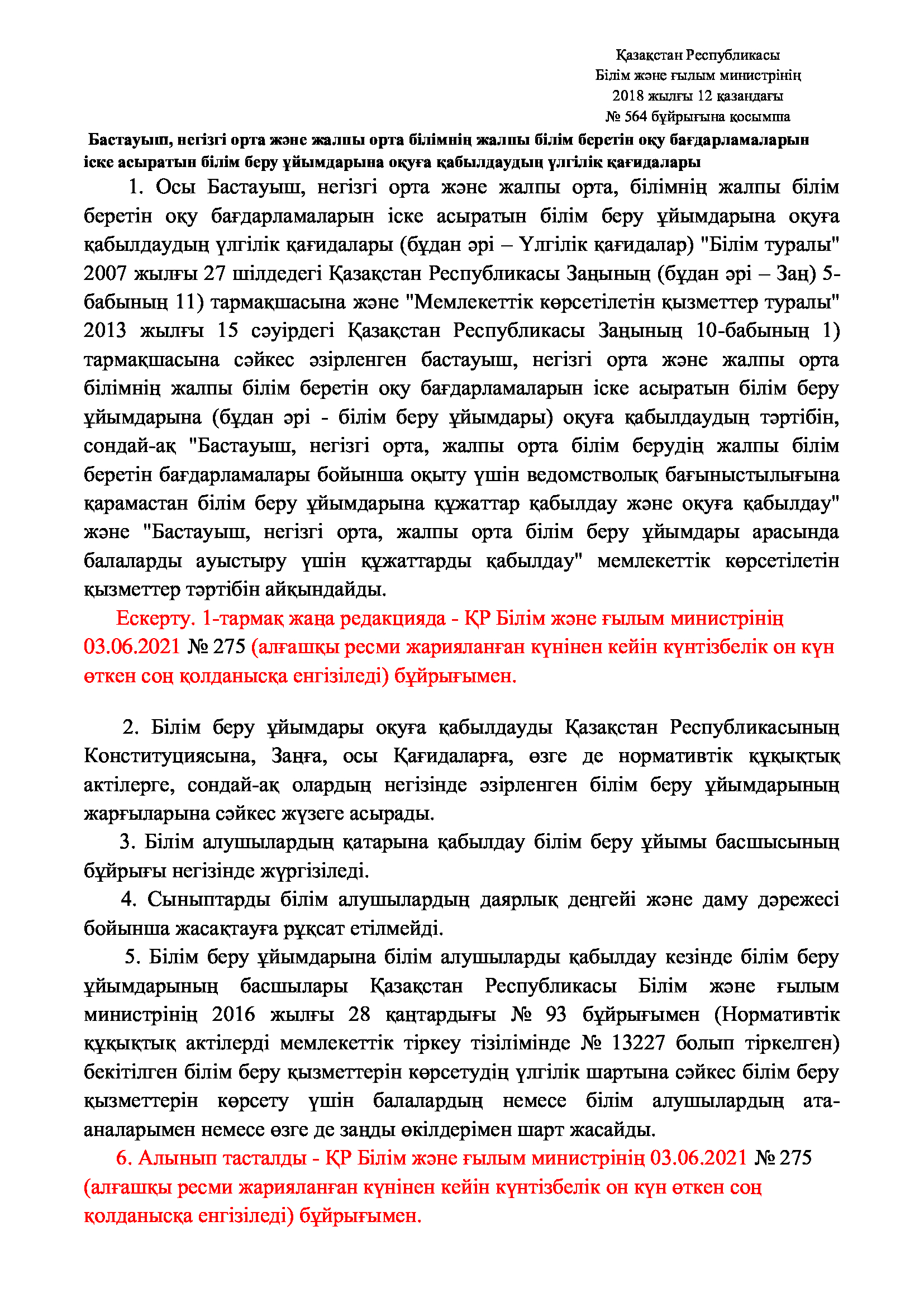 ҚАҒИДА Бастауыш, негізгі орта және жалпы орта білімнің жалпы білім беретін оқу бағдарламаларын іске асыратын білім беру ұйымдарына оқуға қабылдау