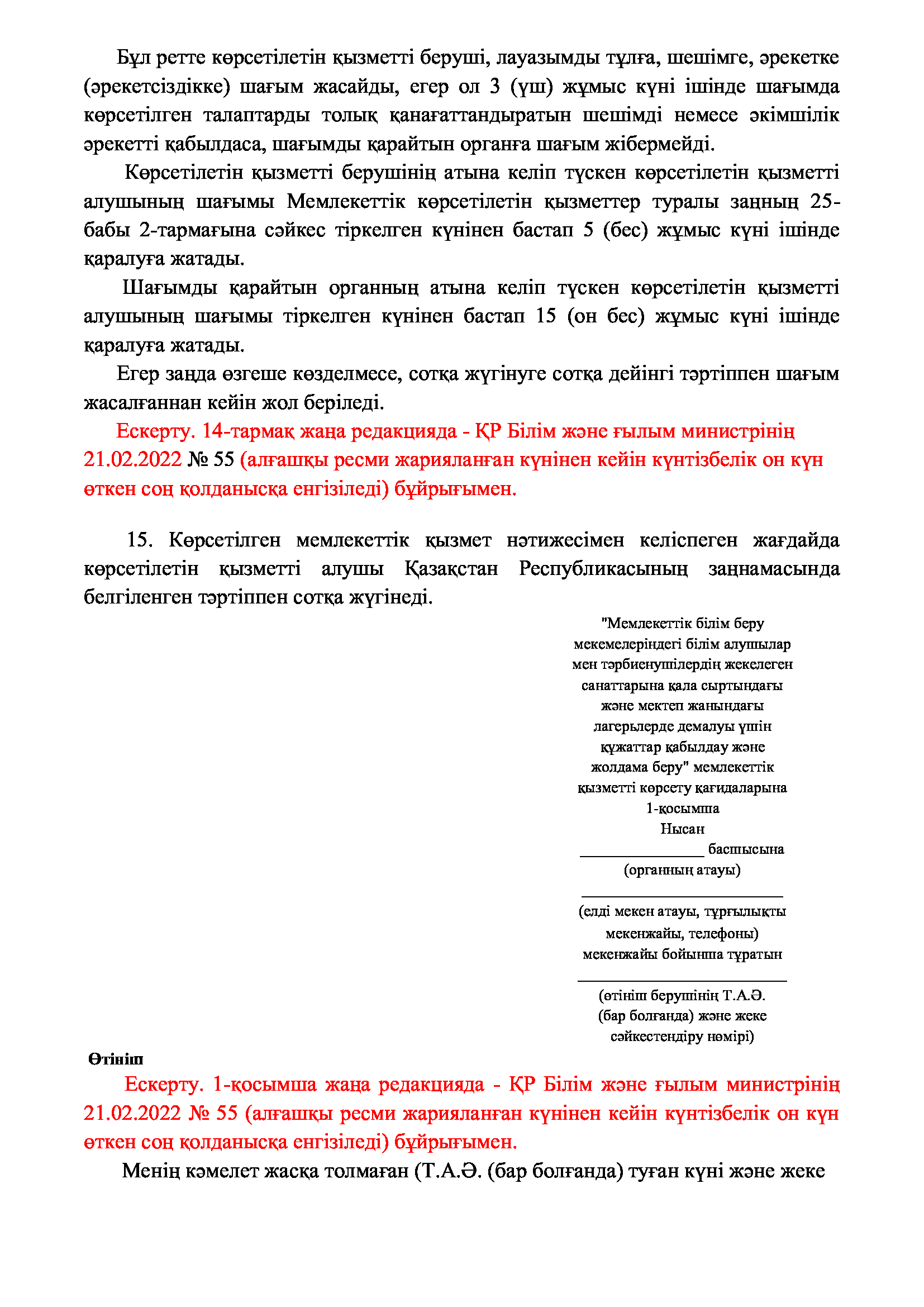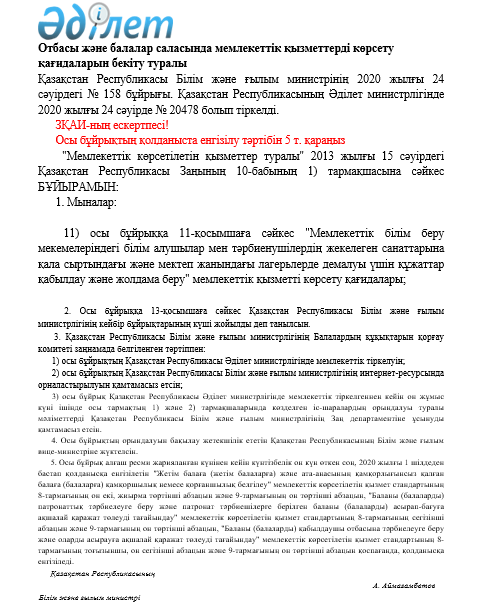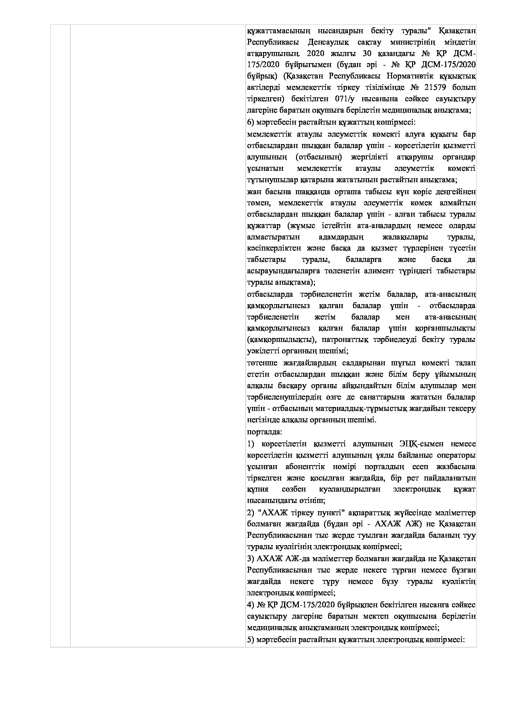 ҚАҒИДА Мемлекеттік білім беру мекемелеріндегі білім алушылар мен тәрбиенушілердің жекелеген санаттарына қала сыртындағы және мектеп жанындағы лагерьлерде демалуы үшін құжаттар қабылдау
